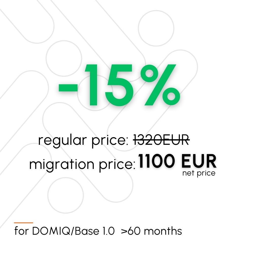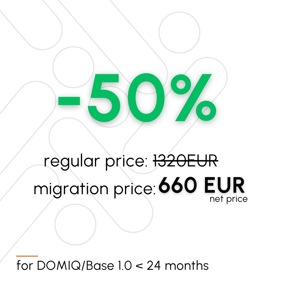 Kaufen Sie jetzt die Migration und senden Sie uns DOMIQ Base 1.0 frühestens am 27. Februar 2026.